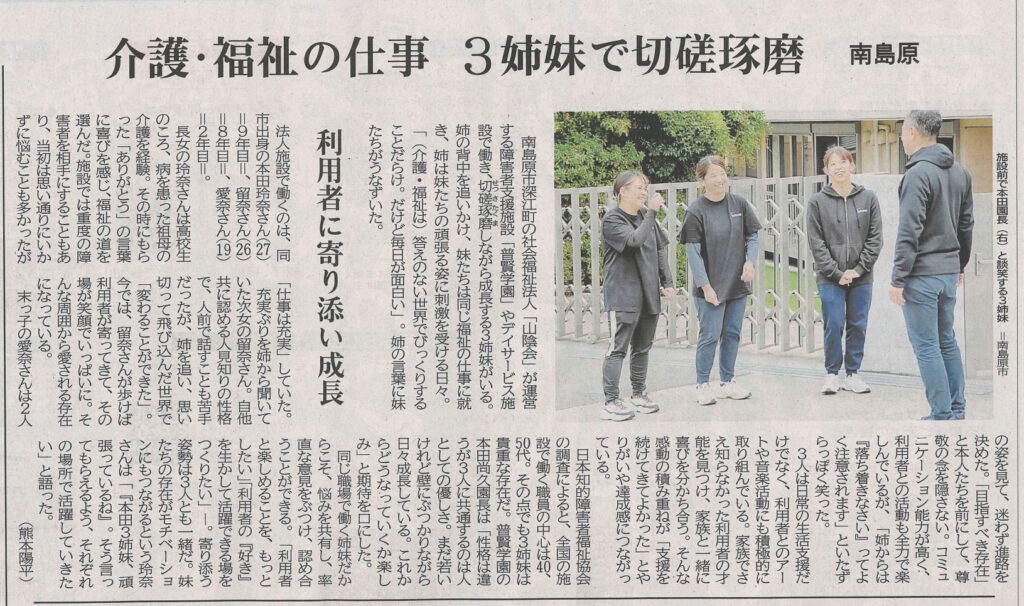 『介護・福祉の仕事 3姉妹で切磋琢磨 南島原』