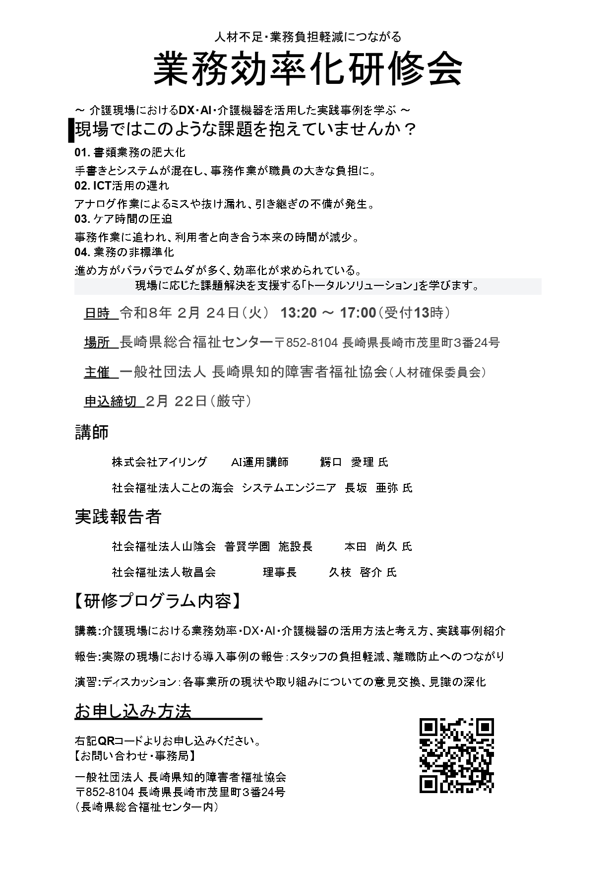 - 主催:一般社団法人長崎県知的障害者福祉協会(人材確保委員会)
