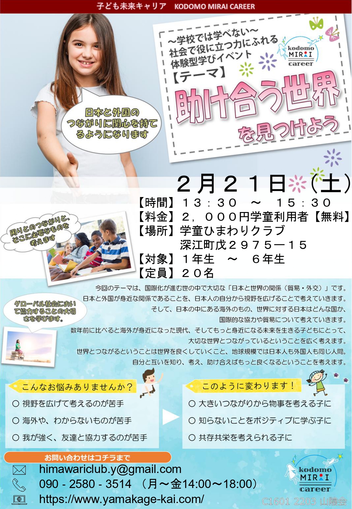【イベント】『学童保育ひまわりクラブにて体験型学習イベント「助け合う世界を見つけよう!」を開催致します!』